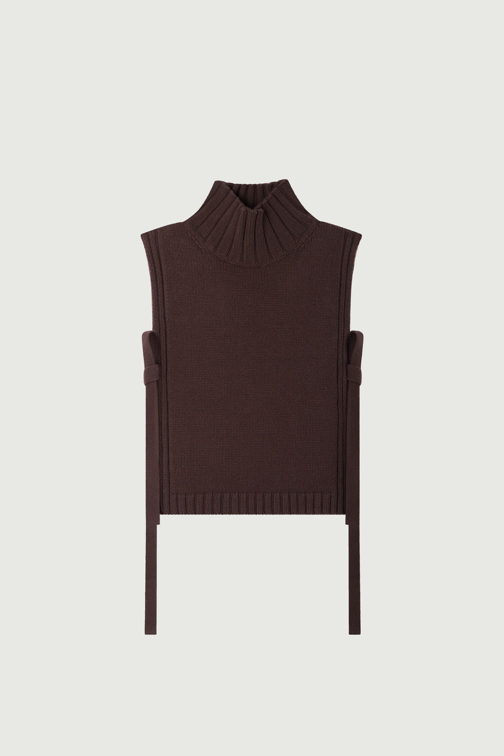 High-neck wool plastron dark brown