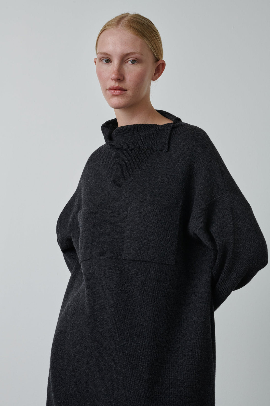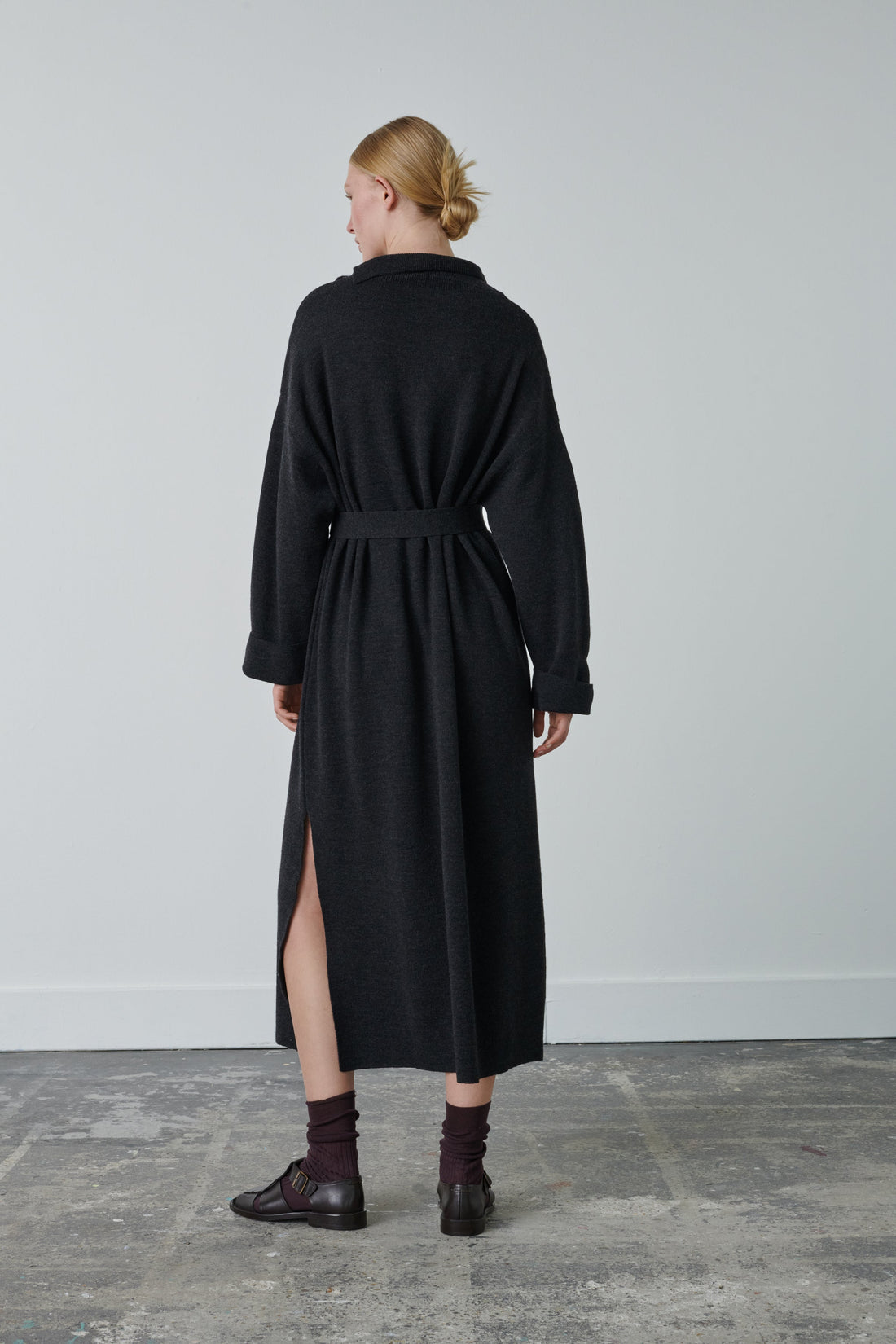Merino wool flowing maxi dress dark grey