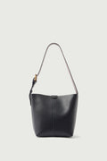 - Large bicoloured bucket bag in soft leather with rectangular base