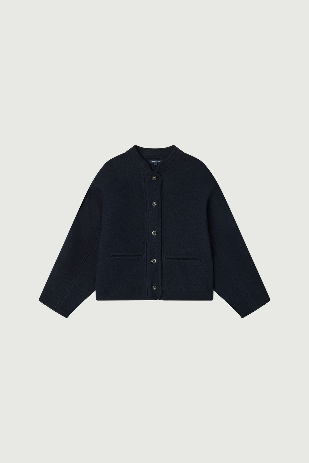 OLYMPE is a thick wool jacket with a short, beautifully suspended silhouette above the waist. It pairs just as well with tailored trousers as it does with relaxed jeans, offering versatility that will enhance all your outfits.